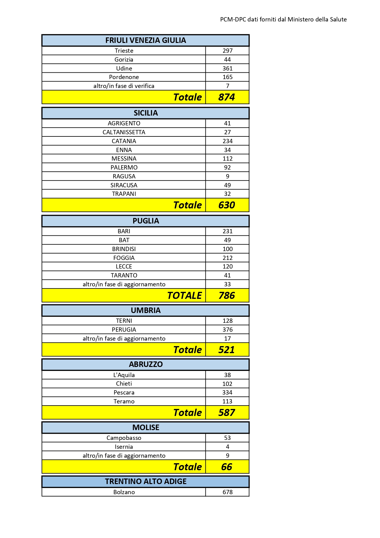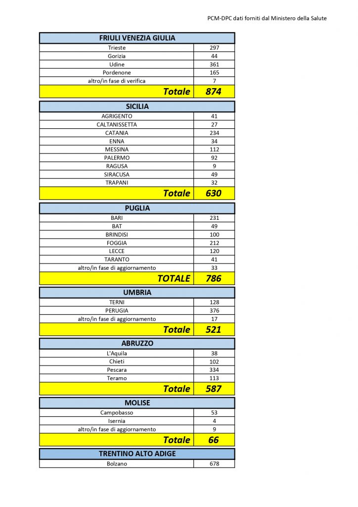 Il totale dei casi positivi Covid in Puglia è di 786, così divisi: