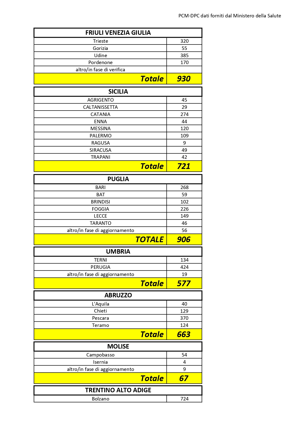 Sono stati registrati 6 decessi: 1 nella provincia di Brindisi, 4 nella provincia di Foggia, 1 nella provincia di Lecce.