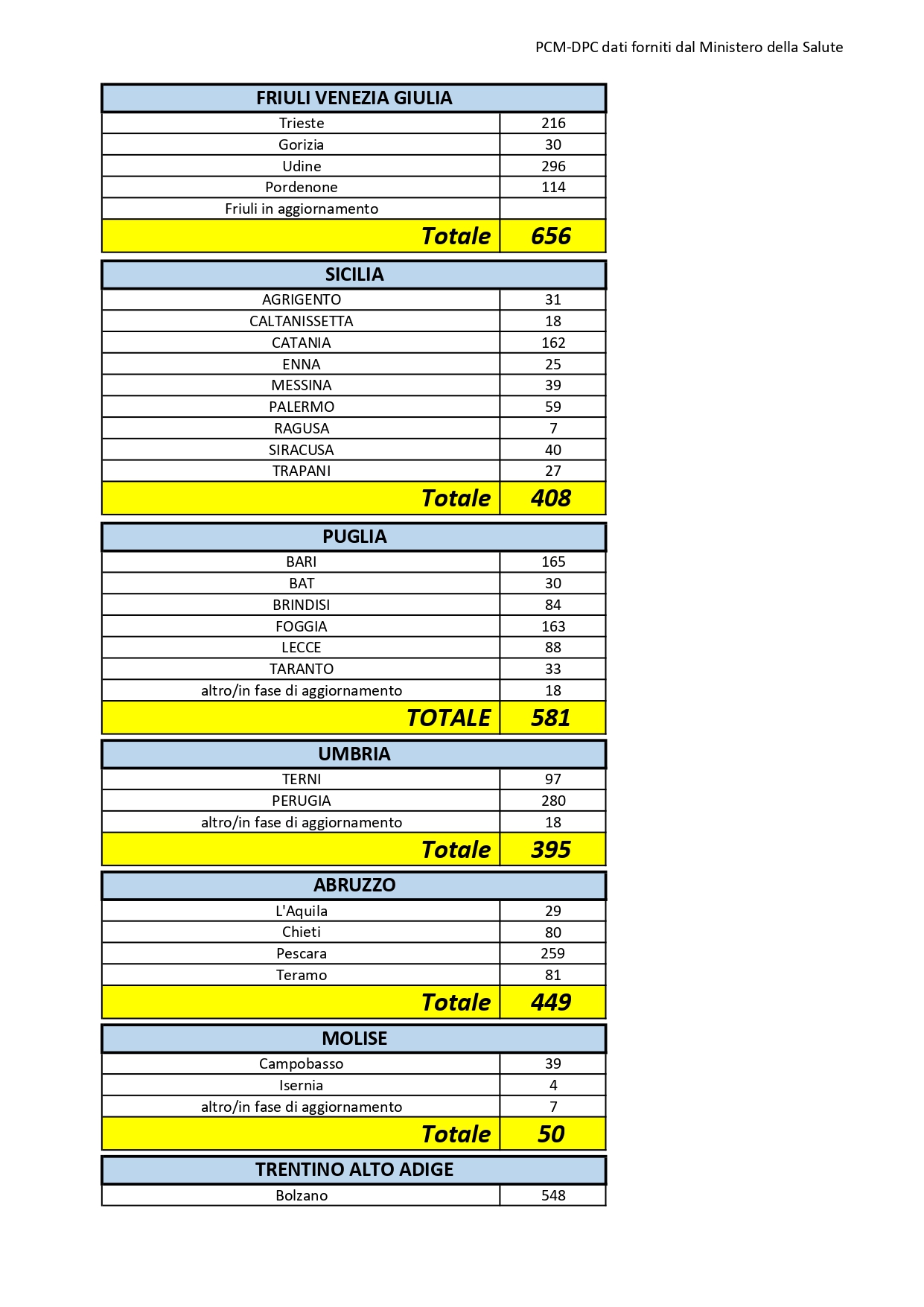 Il totale dei casi positivi Covid in Puglia è di 581, così divisi: