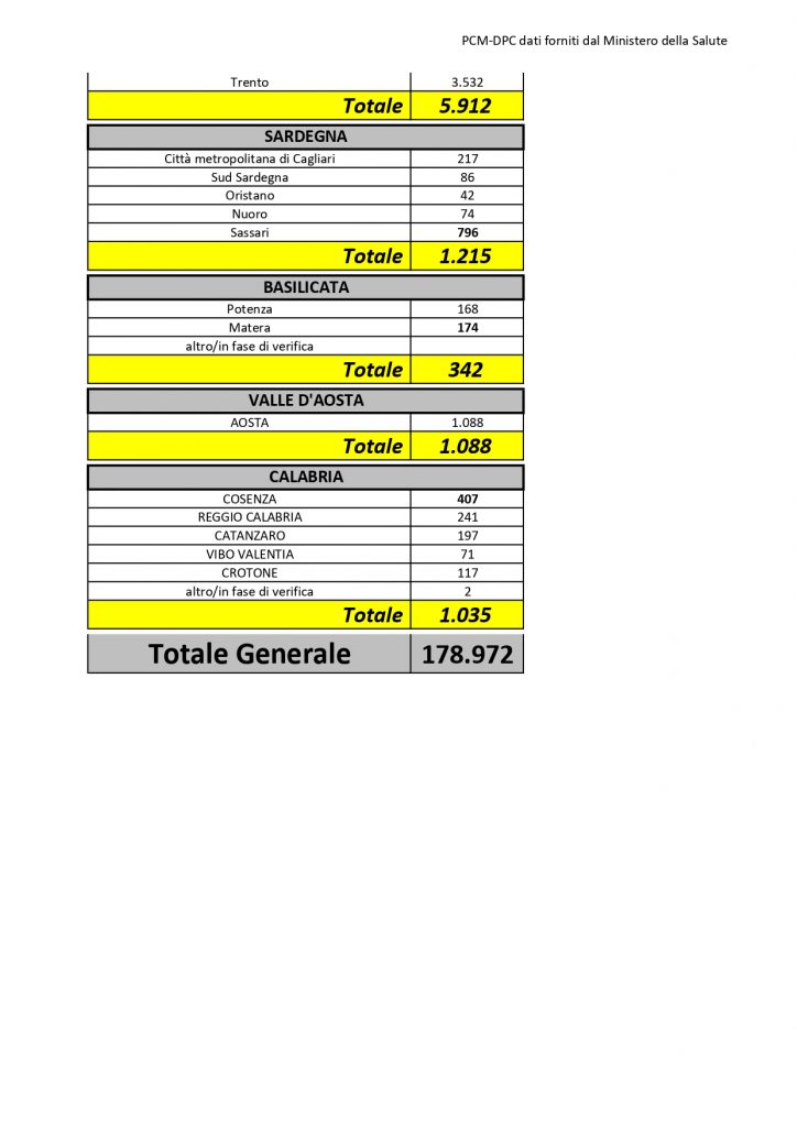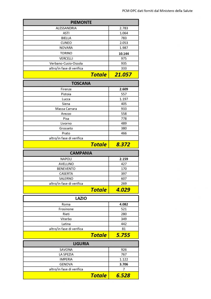16 casi la cui provincia è in corso di attribuzione.