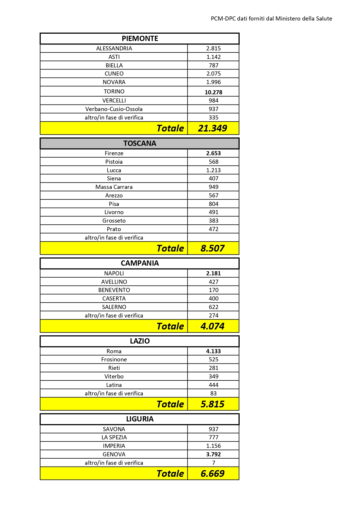 5 per i quali è in corso l’attribuzione della relativa provincia.