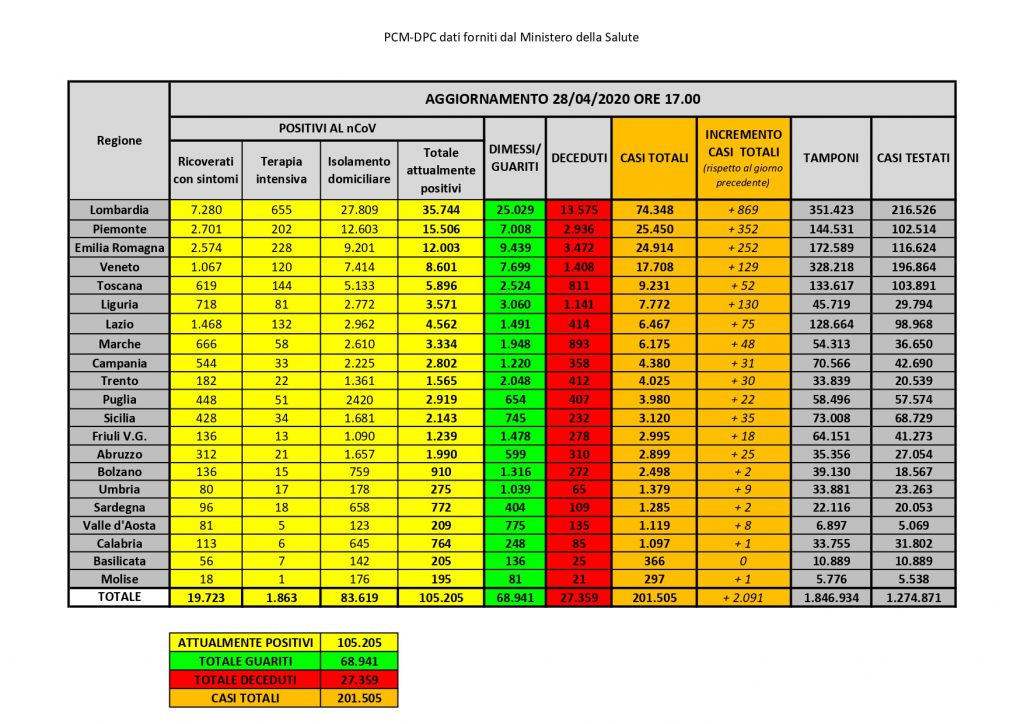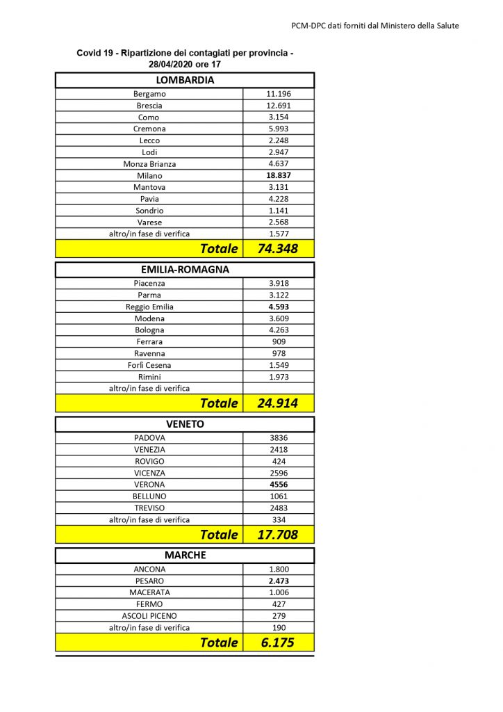 Il presidente della Regione Puglia, Michele Emiliano, sulla base delle informazioni del direttore del dipartimento Promozione della Salute Vito Montanaro, informa che oggi martedì 28 aprile in Puglia, sono stati registrati 1.520 test per l’infezione da Covid-19 coronavirus e sono risultati positivi 22 casi, così suddivisi: