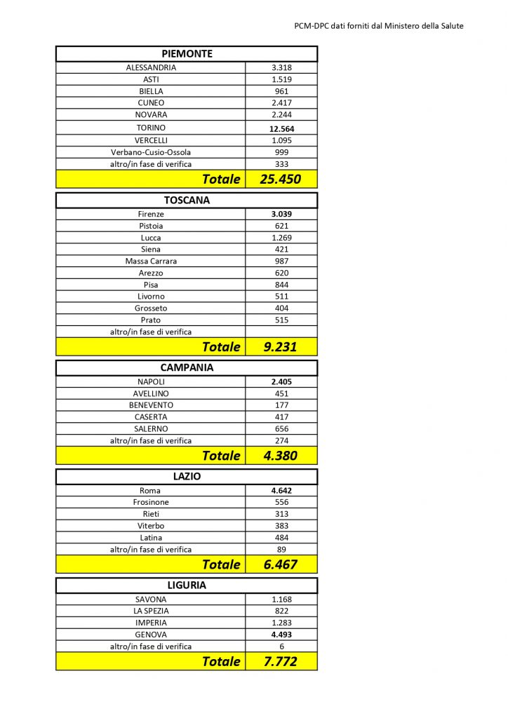 2 per i quali è in corso l’attribuzione della relativa provincia.