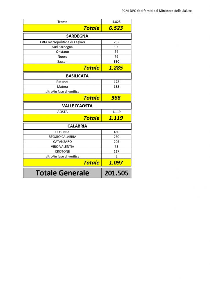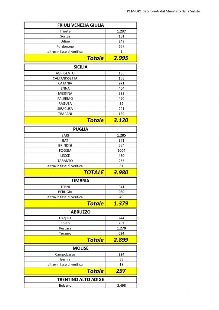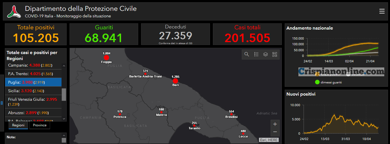 Il totale dei casi positivi Covid in Puglia è di 3.980 così divisi:
