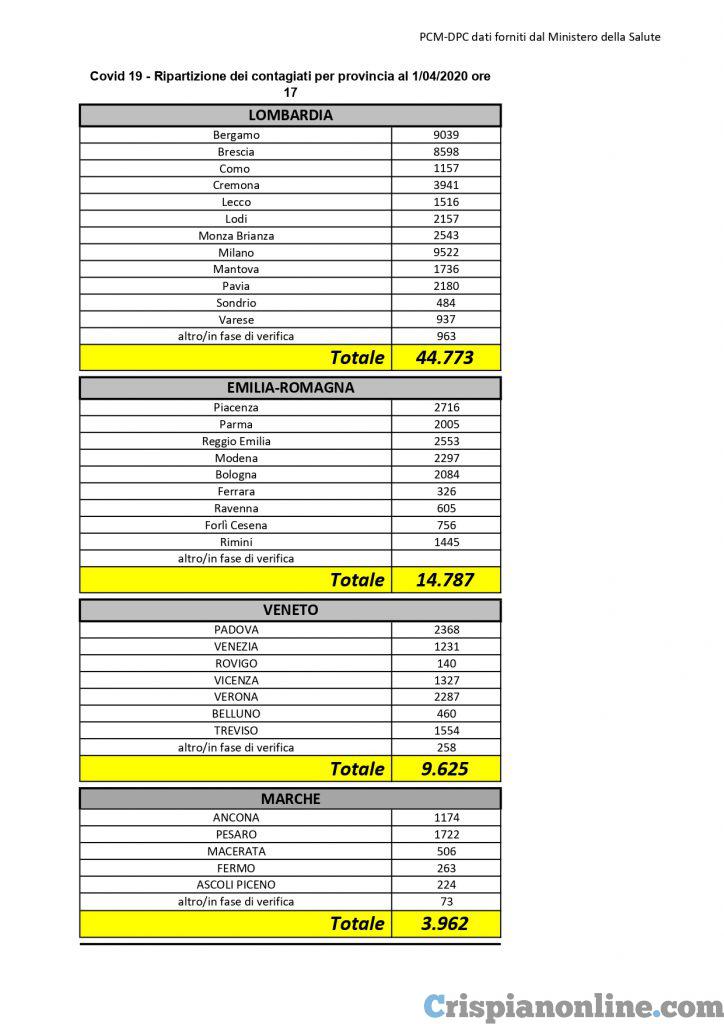 BOLLETTINO EPIDEMIOLOGICO 1/4/2020