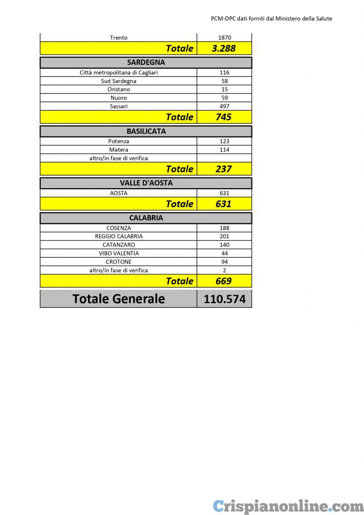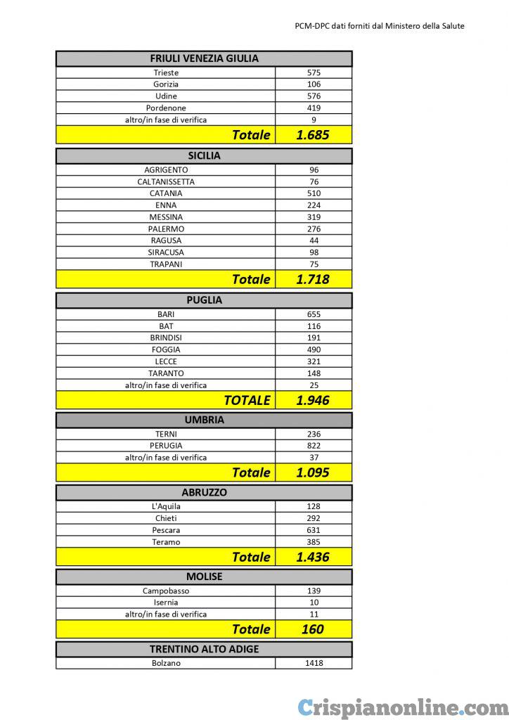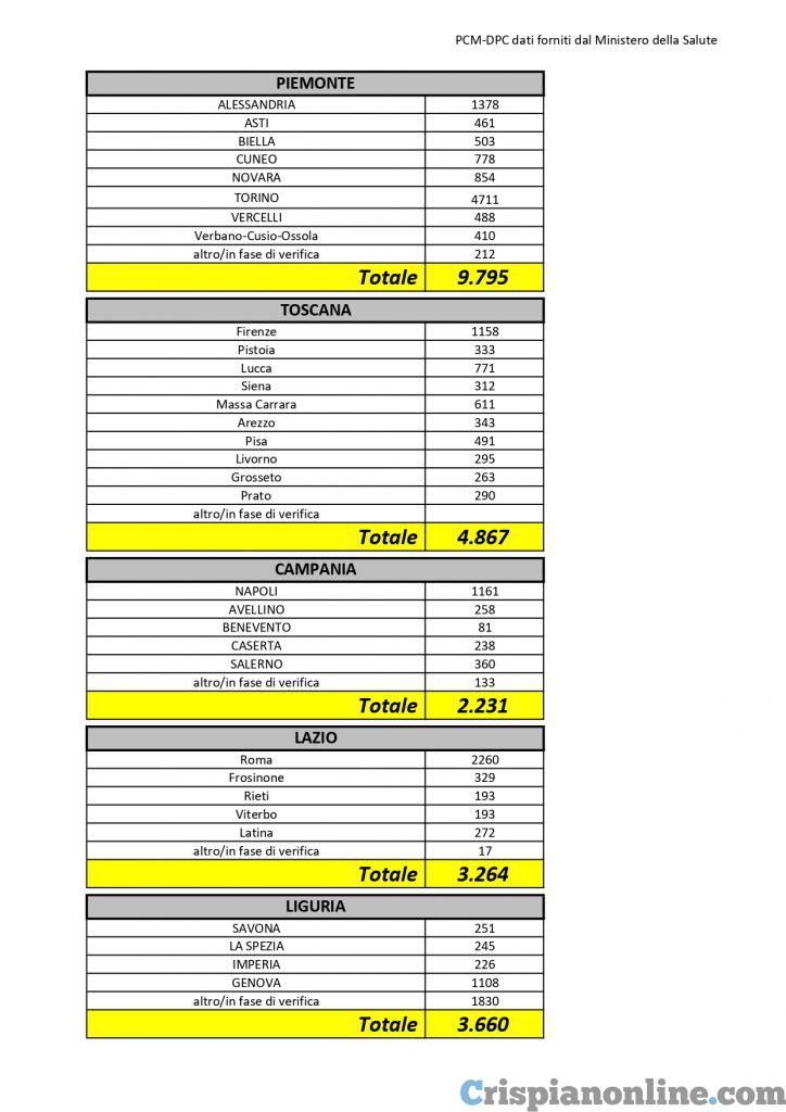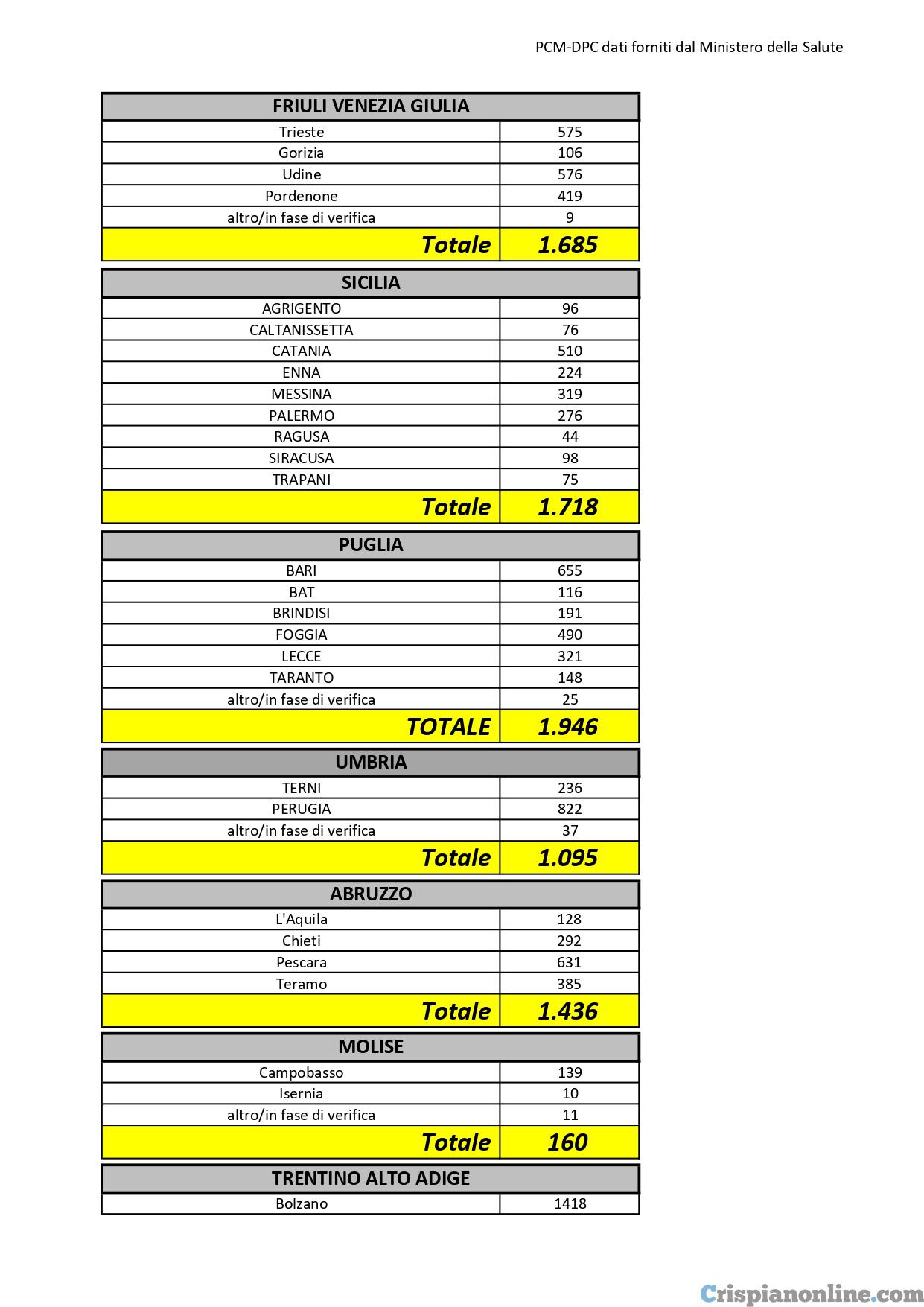 (La somma dei dati per provincia è superiore di 2 casi perché include le schede non ancora attribuite per provincia e che sono state nel frattempo assegnate).