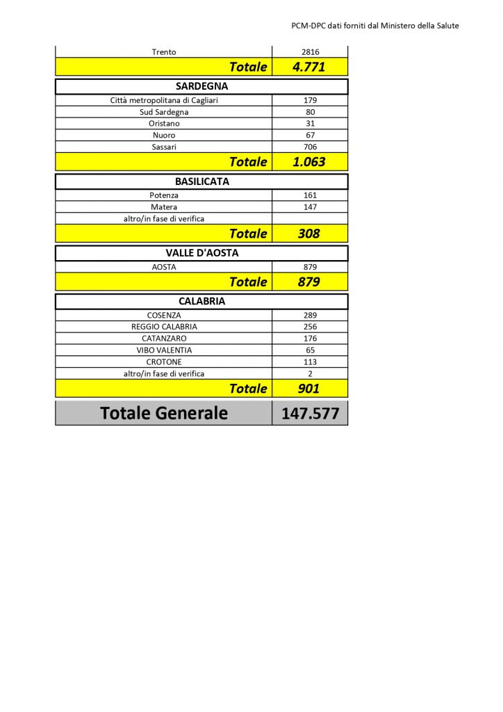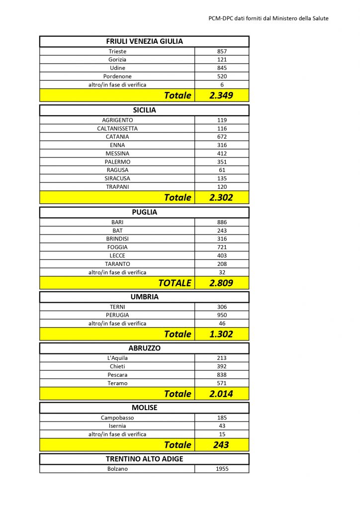 Il totale dei casi positivi Covid in Puglia è di 2.809 così divisi: