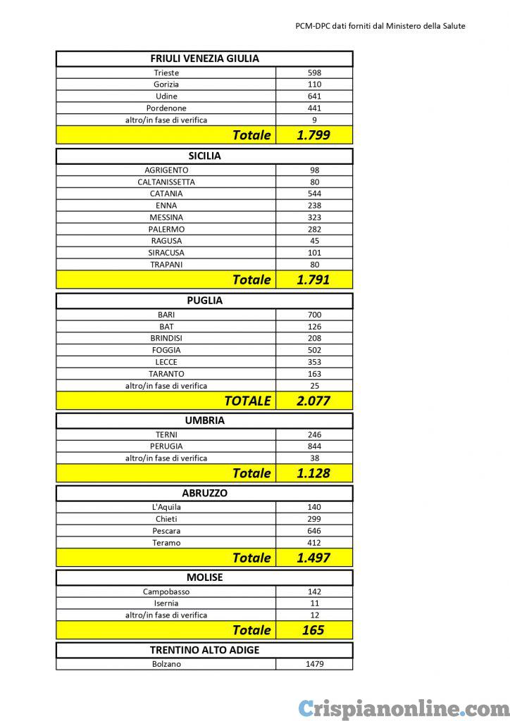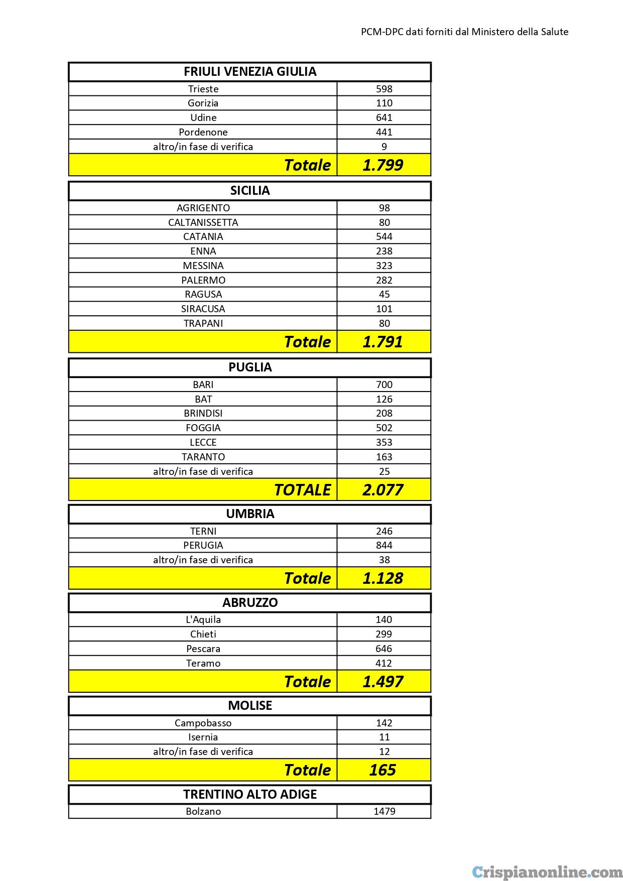 Il totale dei casi positivi Covid in Puglia è di 2.077 così divisi: