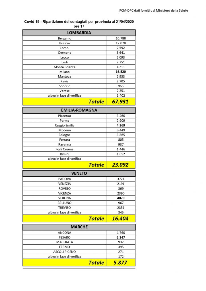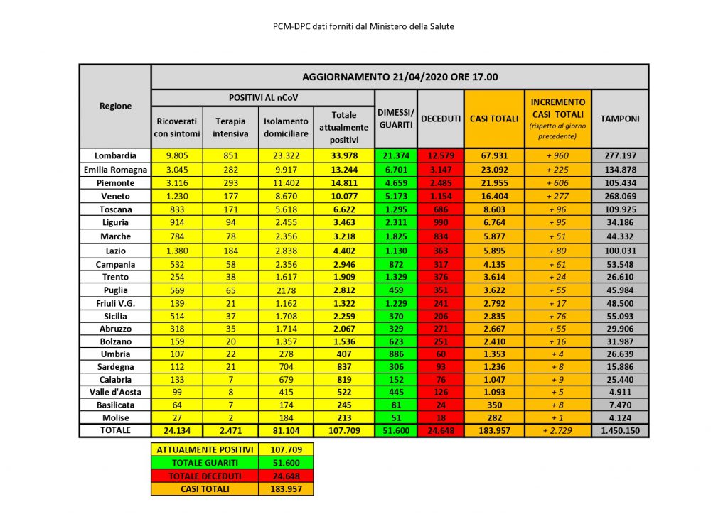 BOLLETTINO EPIDEMIOLOGICO 21-04-2020