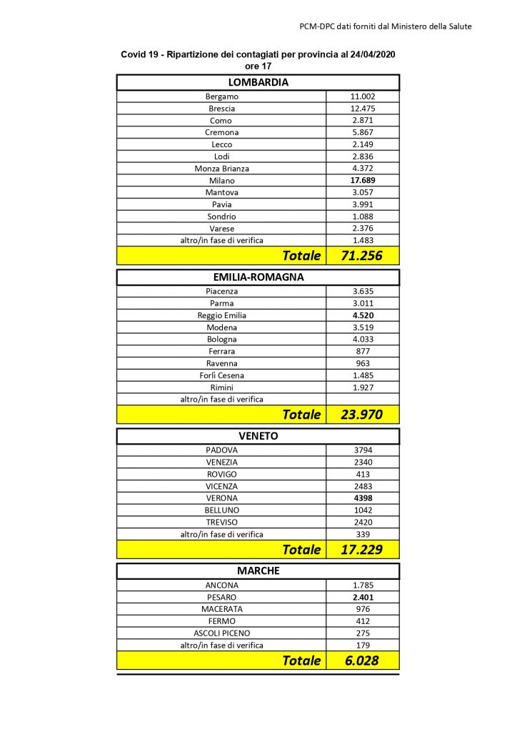 Il presidente della Regione Puglia, Michele Emiliano, sulla base delle informazioni del direttore del dipartimento Promozione della Salute Vito Montanaro, informa che oggi venerdì 24 aprile, in Puglia, sono stati registrati 2.062 test per l’infezione da Covid-19 coronavirus e sono risultati positivi 42 casi, così suddivisi: