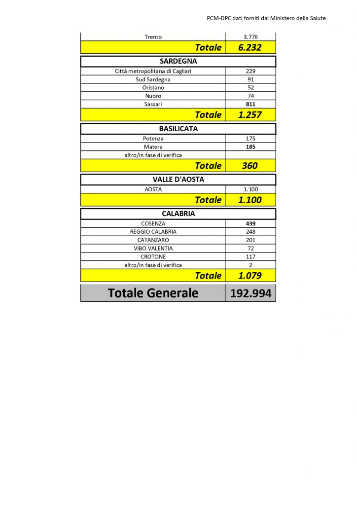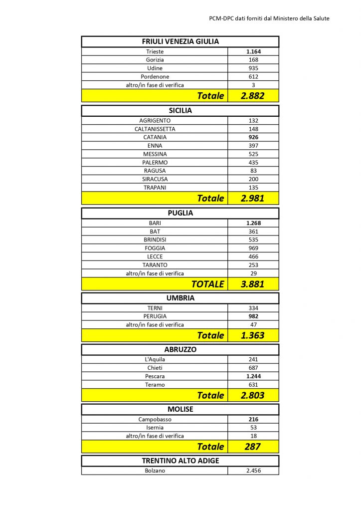 Il totale dei casi positivi Covid in Puglia è di 3.881 così divisi: