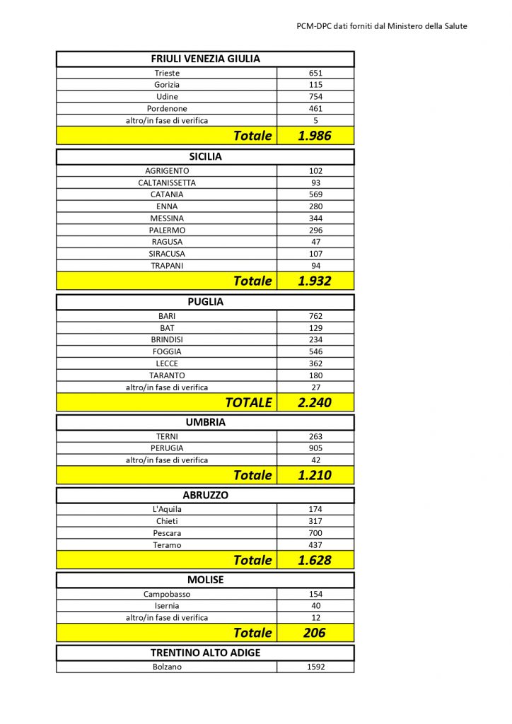 Il totale dei casi positivi Covid in Puglia è di 2.240 così divisi: