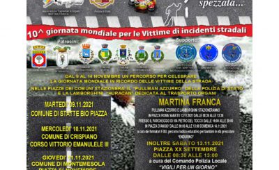 L’Associazione Trapiantati DI Organi – MartinaFranca, in comunione con il Moto Club San MartinoMotosoccorso O.d.V. di Martina Franca, anche per il2021, per il decimo anno in concomitanza con lemanifestazioni che si svolgeranno in tutta Italia e nelMondo per celebrare il ricordo delle Vittime dellaStrada, per sensibilizzare i cittadini sui temi…