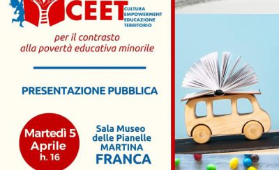 Martedì 12 aprile, alle ore 19, presso la Sala Consiliare del Comune di Crispiano verrà presentato alla cittadinanza il progetto Rete CEET – Cultura, Educazione, Empowerment, Territorio Sono passati quasi due anni da quando il Comitato Arci Valle d’Itria e il Circolo Culturale S. Allende – Arcallegra hanno avviato, sui…