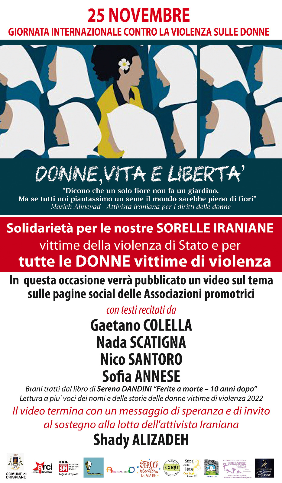 Si comunica, inoltre, che il 25 Novembre le stesse associazioni hanno inviato al Presidente del Consiglio Comunale di Crispiano e a tutti i Consiglieri comunali un proposta di ordine del giorno, con la richiesta di esaminarlo ed approvarlo nel primo Consiglio Comunale utile, dal titolo: “ Donne, vita e libertà – solidarietà alle donne iraniane” , per unirci alle altre istituzioni che con tale messaggio chiedono al Governo Italiano di fare pressione con urgenza sul Governo iraniano acchè cessi immediatamente la repressione sanguinosa delle mobilitazioni, vengano liberate le persone detenute in seguito alle proteste e venga garantita la libertà alle donne iraniane e il pieno rispetto dei diritti umani.