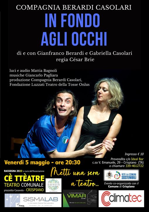E lo fa a Crispiano, il paese di Gianfranco Berardi, premio Ubu 2018, proponendo nel Teatro comunale della cittadina, lo spettacolo “In fondo agli occhi”, un lavoro che porta la regia di César Brie.