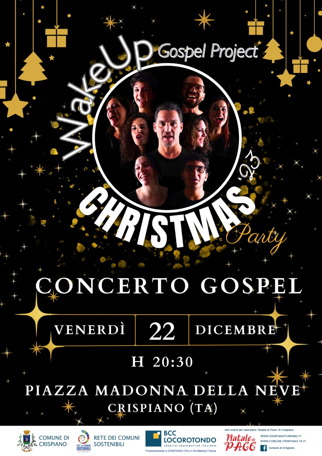 È una settimana intensa che viaggia sull’onda della musica questa che precede il Natale a Crispiano. Tra le iniziative in programma nel ricco cartellone “Natale di Pace 2023”, venerdì 22 dicembre, Piazza Madonna della Neve diventa la suggestiva cornice dei Wakeup Gospel Project in tour. Sound check nel pomeriggio e poi esplosione di note e voci dal sound avvolgente e rigenerante, musiche della tradizione gospel, natalizia e non solo, in uno spettacolo che ha sempre il potere di coinvolgere il pubblico grazie all’energia che si sprigiona naturalmente sul palco, con cantanti e musicisti diretti dal M° Graziano Leserri. Sedici anni di esperienza musicale, diverse collaborazioni con cantanti e ballerini del mondo della black music, con noti cantautori italiani e partecipazioni a festival ed eventi internazionali, tra cui l’Orchestra della Magna Grecia e Achille Lauro all’Arena di Verona nel 2021, i Wakeup Gospel Project, originari di Martina Franca, sono ormai una conferma di successo per il pubblico. Un appuntamento imperdibile, questo, che l’amministrazione comunale ha fortemente voluto inserire in programma per la comunità, per accogliere i tanti turisti e i concittadini che rientrano in questi giorni in occasione delle feste natalizie. Una tappa per scambiarsi gli auguri a suon di musica e lasciarsi contagiare dal brio gospel in stile Wakeup.