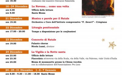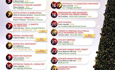 Ritorna puntuale anche quest’anno la rassegna del “Natale in Chiesa madre” promossa dalla Parrocchia Santa Maria della neve in Crispiano retta da don Michele Colucci. Si tratta di un ricco cartellone di eventi che spaziano dalla liturgia alla musica e abbracciano le tradizioni del periodo natalizio così care alla nostra…