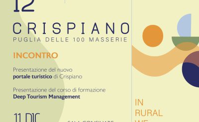 Lunedì 11 Dicembre 2023 alle 18.00 nella Sala Consiliare del Comune di Crispiano – territorio inserito nella Rete dei Comuni Sostenibili – verrà presentato il nuovo portale del turismo dedicato alla città di Crispiano e al territorio delle 100 Masserie. L’azione si inserisce in un più ampio programma di attività…