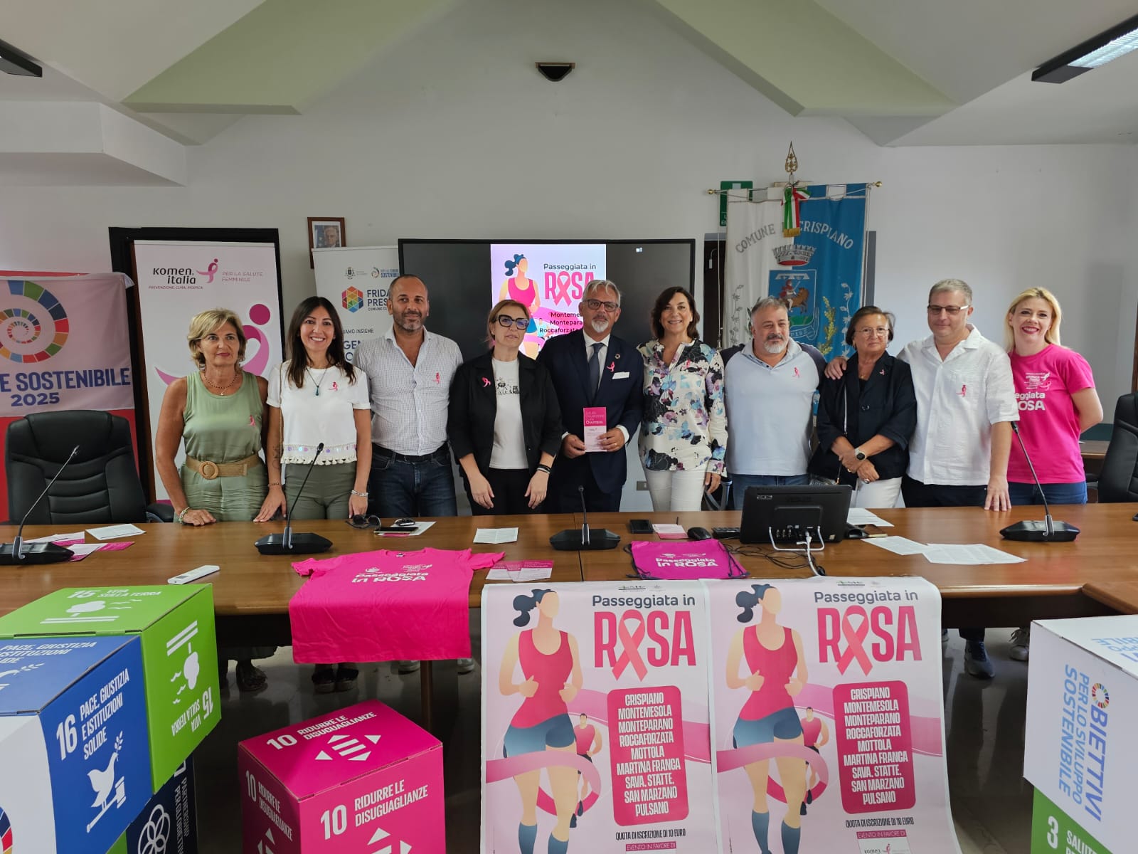 Si è tenuta mercoledì mattina, nella sala consiliare di Crispiano la conferenza stampa di presentazione delle prossime tappe della “Passeggiata in Rosa”, un’iniziativa di sensibilizzazione sulla prevenzione e la lotta contro i tumori al seno, organizzata dall’associazione ELISIR APS e promossa nell’ambito delle attività di Susan G. Komen Italia.