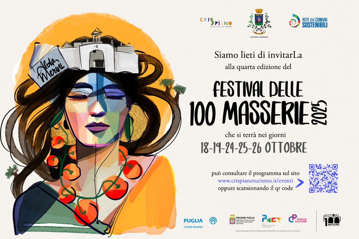 Prende il via oggi a Crispiano la quarta attesissima edizione del “Festival delle 100 Masserie”, un evento che si pone l’obiettivo di celebrare l’identità rurale, la cultura e le inestimabili tradizioni di questo territorio. Il “Festival delle 100 Masserie – enogastronomia cultura territorio”, si snoderà in diverse giornate organizzate nei fine settimana tra il 18 e il 26 ottobre. Il ricco programma è un autentico intreccio di sapori, parole, arti e memoria, pensato per riscoprire il valore autentico del paesaggio e delle sue storie.