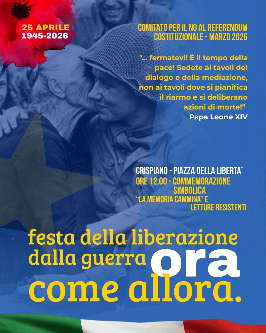🕛 Sabato 25 Aprile 26 Ore 12.00 – Commemorazione simbolica📍 Crispiano – Piazza della Libertà