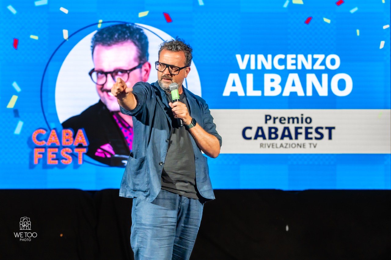 Due gli sketch che hanno visto protagonista Vincenzo Albano. Il comico tarantino, apprezzato anche sul piccolo schermo per le sue partecipazioni a Zelig (con Claudio Bisio e Vanessa Incontrada) e Colorado, ha confermato la sua esuberante e travolgente simpatia, prima impersonando un improbabile impresario del mondo dello spettacolo e poi con un monologo, ricco di una serie di battute esilaranti, sul rapporto uomo-donna (ha anche cantato un brano, da lui composto, in cui ha celebrato l’amore, per niente … “disinteressato” che nutrirebbe per la sua compagna). A lui un meritatissimo Premio Rivelazione Tv.