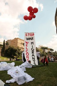 Qui, poco prima della partenza, si terrà il Flash Mob “Stop war, Welcome migrants”.