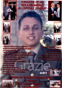 L’iniziativa è stata organizzata, in occasione della ricorrenza del sesto anniversario, dall’Amministrazione Comunale d’intesa con il padre Francesco Paolo dell’Associazione Nazionale Caduti Emissioni di Pace, i quali invitano a partecipare tutti i cittadini che desiderano unirsi al ricordo del giovane militare.