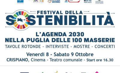 Un ricco calendario di eventi: l’agenda 2030 nella Puglia delle 100 masserie Sensibilizzare la cittadinanza sui temi relativi alla salvaguardia dell’ambiente, dell’arte sostenibile, nonché in generale della diffusione e della conoscenza dell’Agenda 2030. Sono questi gli obiettivi del “Festival della sostenibilità di Crispiano: l’agenda 2030 nella Puglia delle 100 masserie”,…