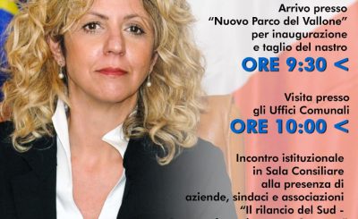 MERCOLEDI 22 MAGGIO VISITA ISTITUZIONALE A CRISPIANO DEL MINISTRO PER IL SUD BARBARA LEZZI