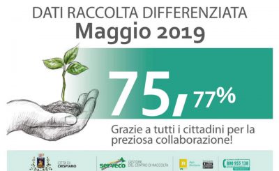 Il 75.77% registrato a maggio è la miglior performance dall’inizio del servizio di raccolta differenziata a Crispiano, sia in termini percentuali che in valore assoluto di quantitativi raccolti in modo differenziato. Continua a crescere la raccolta differenziata grazie ai cittadini virtuosi di Crispiano ed all’ottimo lavoro di sensibilizzazione e controllo…