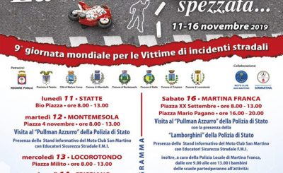 L’Associazione Trapiantati Organi Puglia ONLUS sezione Comunale Martina Franca, in comunione con il Moto Club San Martino Motosoccorso O.d.V. di Martina Franca e di concerto col SERMARTINA, anche per il 2019, in concomitanza con le manifestazioni che si svolgeranno in tutta Italia e nel Mondo per celebrare il ricordo delle…