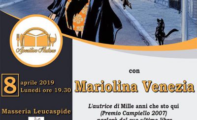 Lunedì alla masseria Leucaspide l’evento di Volta la carta. Ospite la scrittrice lucana che parlerà del suo nuovo libro, Rione Serra Venerdì. Per partecipare è necessaria la prenotazione Ecco un altro grande appuntamento di Aperitivo d’Autore. Lunedì 8 aprile sarà ospite del format di Volta la carta Mariolina Venezia, già…