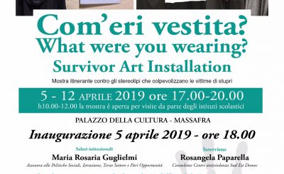 Da venerdì 5 e sino a venerdì 12 aprile, sarà possibile visitare, presso il Palazzo di Città di Massafra “Com’eri vestita?”, la mostra itinerante contro gli stereotipi che colpevolizzano le vittime di stupri Era il 2013 quando veniva inaugurata presso l’Università del Kansas “What were you wearing?”, la mostra che…