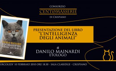 Nell’ambito delle iniziative organizzate dal Consorzio “Cento Masserie “ di Crispiano,avrà luogo Mercoledì 10 febbraio 2010 alle ore 18.30 nella Sala Claridge, un’importante conferenza del noto etologo, Danilo Mainardi sul tema ” Intelligenza degli animali “. Il suo curriculum è veramente prestigioso: nel 1956 si laurea a Parma in biologia,…