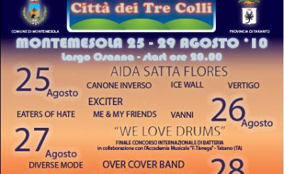 È tutto pronto per la terza edizione del Festival Città dei tre Colli che si svolgerà a Montemesola dal 25 al 29 agosto 2010. Il festival, patrocinato dal Comune di Montemesola e dalla Provincia di Taranto, è promosso e organizzato dall’associazione musicale Euterpe della Chora, fondata nel 1987 e costituita…