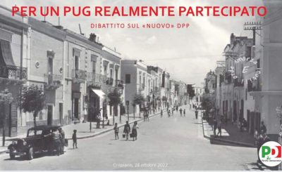 Venerdì 28 ottobre 2022 alle ore 18.00 presso la sala consiliare si terrà un incontro pubblico organizzato dal Circolo PD di Crispiano: PER UN PUG REALMENTE PARTECIPATO: DIBATTITO SUL “NUOVO” DPP. L’incontro è aperto a tutti i cittadini che hanno voglia di approfondire, nonché fornire contributi costruttivi alla discussione sul…