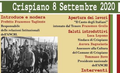 Crispiano 8 settembre 2020, alle ore 18:00, presso il teatro comunale locale, si terrà un evento commemorativo per celebrare il 77° anniversario dell’Armistizio. A causa delle restrizioni dovute al COVID 19, i posti a sedere saranno limitati, ma la cittadinanza potrà seguire l’evento in questione grazie alla diretta streaming che…