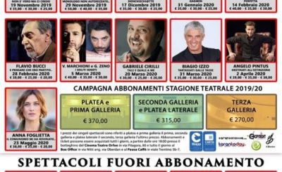 Il 12 novembre il Teatro Orfeo di Taranto,palcoscenico della città dei due mari che quest’anno celebra i 105 anni, dà il via alla stagione artistica 2019/2020. Un cartellone entusiasmante, che conta ben 16 spettacoli, di cui 5 fuori abbonamento. A dettare lo start sarà Paolo Ruffini con “UP&Down” (spettacolo fuori…