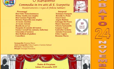 L’appuntamento del 24 novembre con la rassegna teatrale “Città di Crispiano – Verso il Centenario” avrà un significato particolare per tanti crispianesi, perché a portare in scena “O Scarfalietto” di Eduardo Scarpetta saranno “I FUORI…CLASSE AL MASSIMO”, una Compagnia teatrale nata nell’Istituto Moro di Taranto, da un progetto della Dirigente…