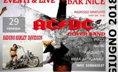 Venerdi 29 arriveranno sul palco del bar Nice un gruppo rock amato da tutti gli AC/DC per far divertire tutti con un raduno di Harley Davidson e auto d’epoca, e per completare il tutto ci saranno panini con porchetta martinese salsiccie e bombette.