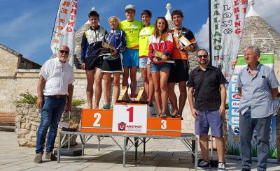 (Da sinistra: Sergio Anesi, il sindaco Franco Ancona, Sebastian Inderst, Eleonora Donadini, Riccardo Scalet, Francesca Taufer, Alessio Tenani, Nicole Scalet e l’assessore Tiziana Schiavone). MARTINA FRANCA (TA): Riccardo Scalet (12′:56″ PWT Italia) e Francesca Taufer (13′:41″ US Primiero) sono in nuovi campioni italiani Sprint di Orienteering. I 2 trentini hanno…