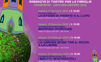 L’11 gennaio 2020, nel teatro comunale avrà inizio la rassegna “Il Nuovo Posto delle Favole”, organizzato da Armamaxa Teatro, Circolo Arci-Uisp Crispiano ‘Mariella Leo’, il Comune di Crispiano, Le Radici e le Ali Arciragazzi di Francavilla e l’Ass. Unitre di Ceglie Messapica, vincitore di “Periferie al Centro” (intervento di Inclusione…