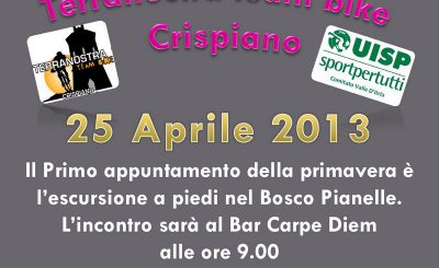 Il primo appuntamento “aperto a tutti” del 2013 è l’escursione a piedi del 25 Aprile. Dopo la felicissima esperienza dello scorso anno, con la partecipazione di 120 persone, ripetiamo a grande richiesta la passeggiata trekking da Crispiano al Bosco Pianelle. Una bella novità di quest’anno è la partecipazione dell’ARCI di…