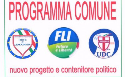 Le segreterie unite di Idee e Democrazia, FLI e UDC in PROGRAMMA COMUNE, dopo aver appreso dall’articolo pubblicato sul Quotidiano, in data 07 luglio 2012, alcune notizie riguardanti le ipotetiche coalizioni politiche future, hanno deciso di pubblicare una nota stampa per effettuare le dovute precisazioni. Si legge nell’articolo di riferimento…